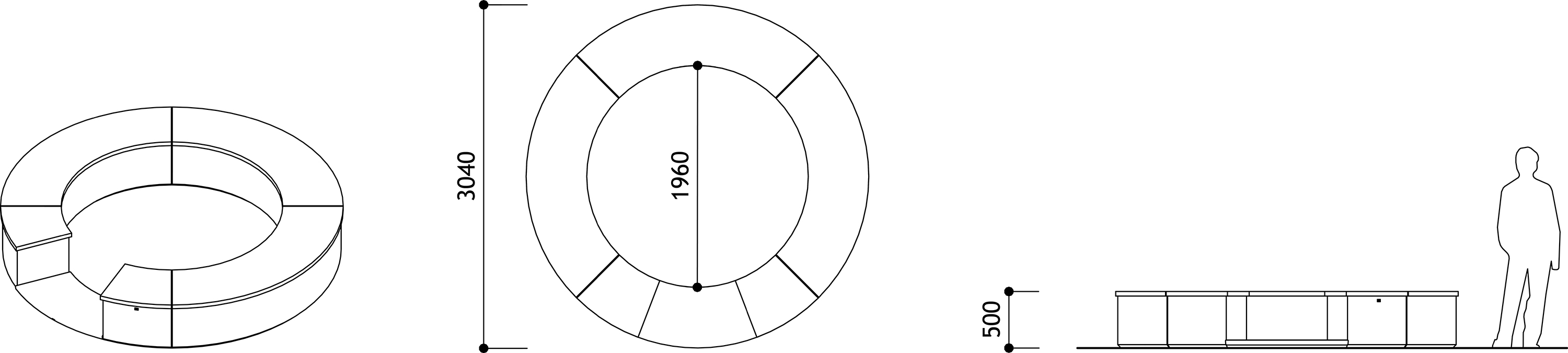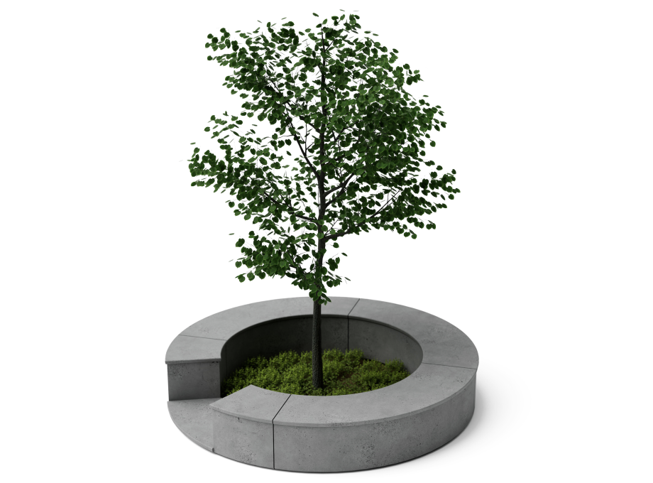 Уличная клумба из бетона K01 с четкими геометрическими формами, сочетает в себе поддержку растений и место для сидения.