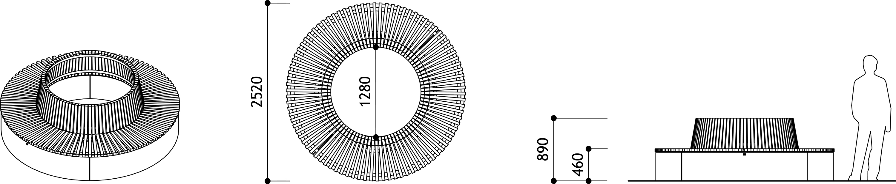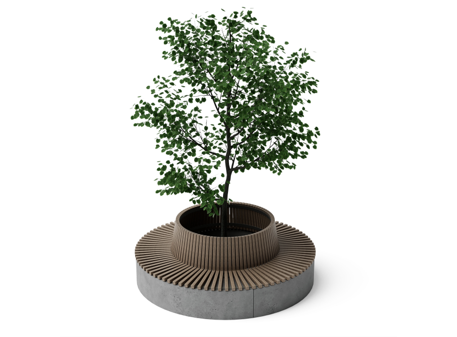 Уличная клумба из бетона K08 с элементами из термодревесины для комфортного сидения, обеспечивает необходимую защиту и поддержку деревьям на территории парка, сада или жилого комплекса.