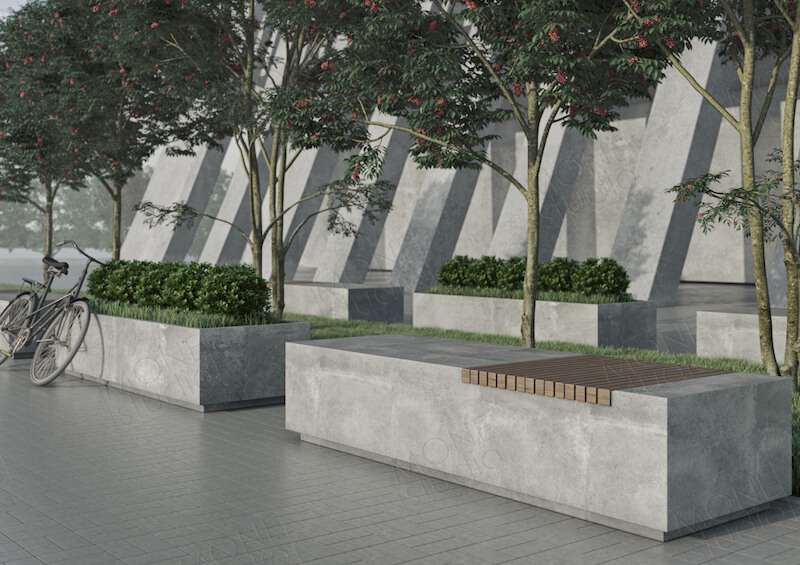 Преимущества: Это многофункциональная, прочная лавка из архитектурного бетона. Такая скамья бесстрашна перед погодными изменениями и физическими воздействиями. При желании, цвет можно заменить на белый или антрацит.