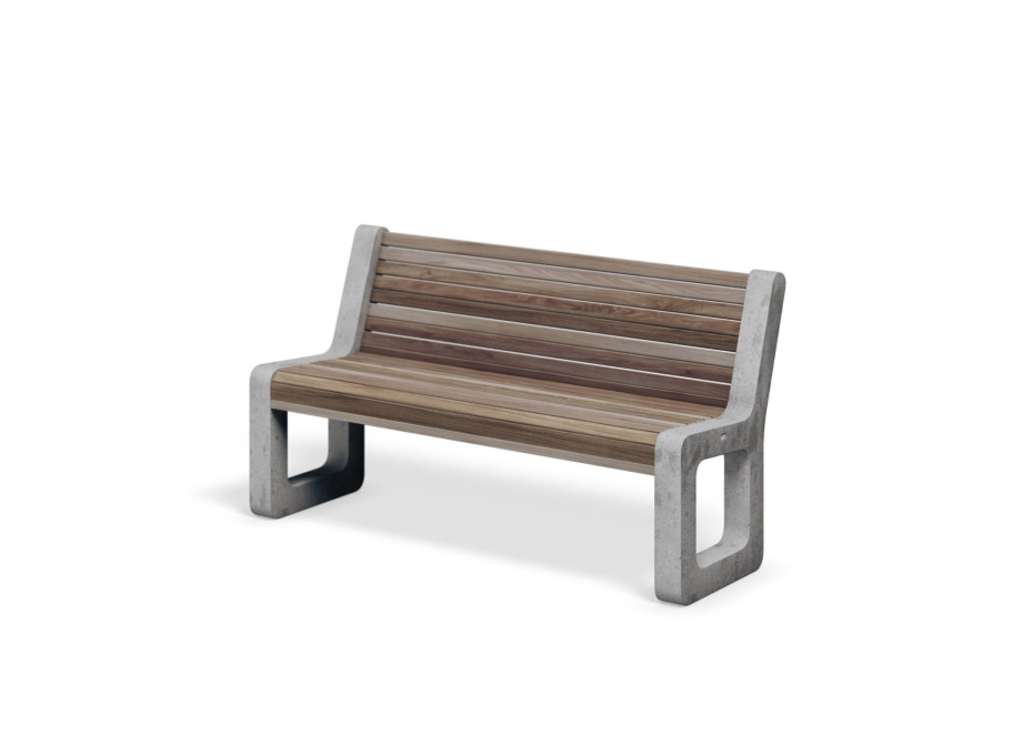 Скамья из бетона Рима — это еще один вариант скамьи с удобной деревянной спинкой и оригинальными бетонными ножками.