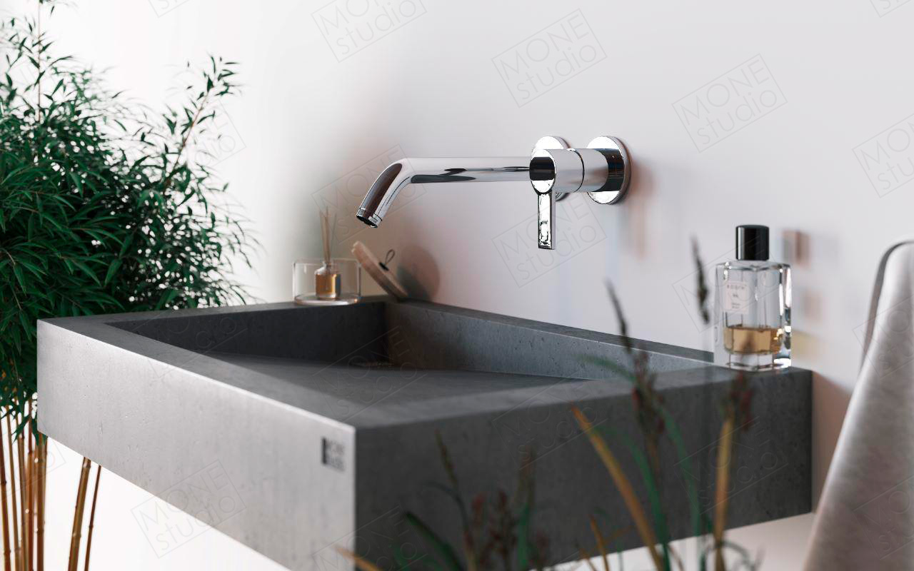 Умывальник из бетона M7B характеризуется простыми линиями и отсутствием лишних деталей.